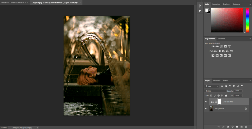Color Balance, This allows you to change the color of the highlights, mid tones, and shadows.