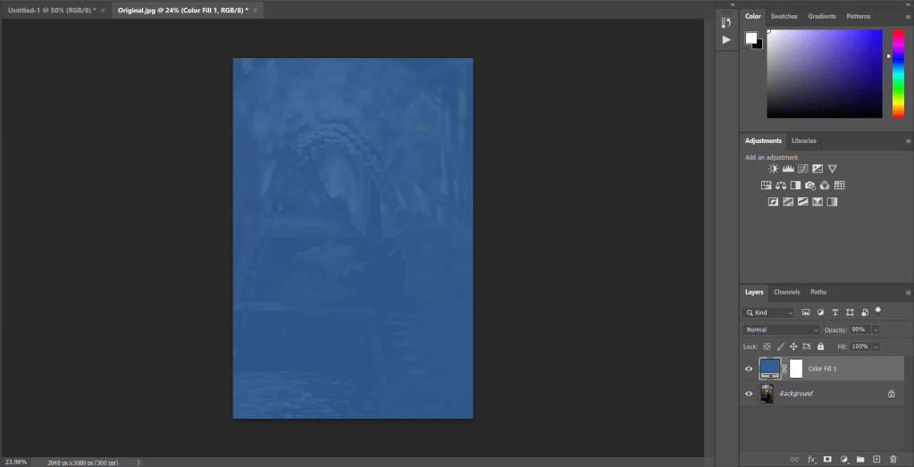 Color Fill, This one is pretty straight forward, it will fill with only one color, this can come in pretty handy when used with different blend modes.