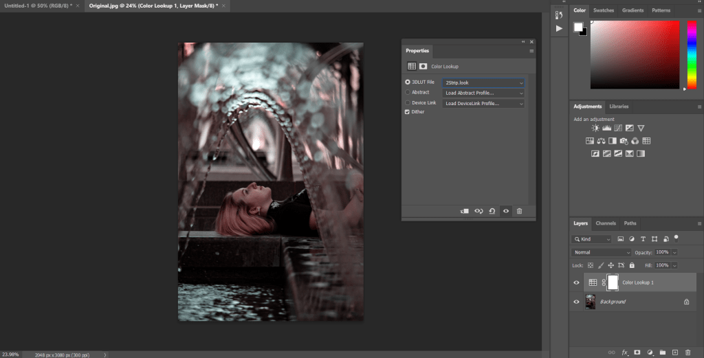 Color Lookup, this will apply a color profile or filter to your photo. You can also find and download other color profiles online.