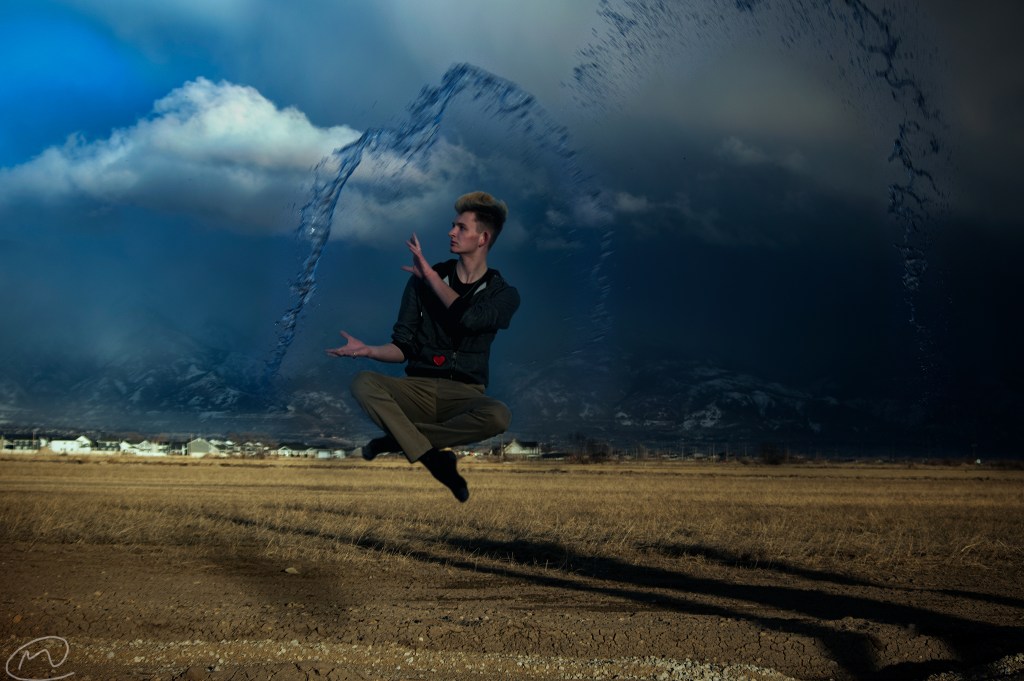 The goal for this photo was to have a picture of me floating in the air with water splashing around me