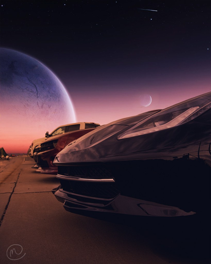 For this photo I found a fantasy sky online, and replaced the sky in the photo, and then used gradient maps to make the colors on the photo match the colors in the sky.